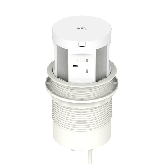 Impulse Round Pop Up Power Unit 4x Socket Module with Wireless Charger