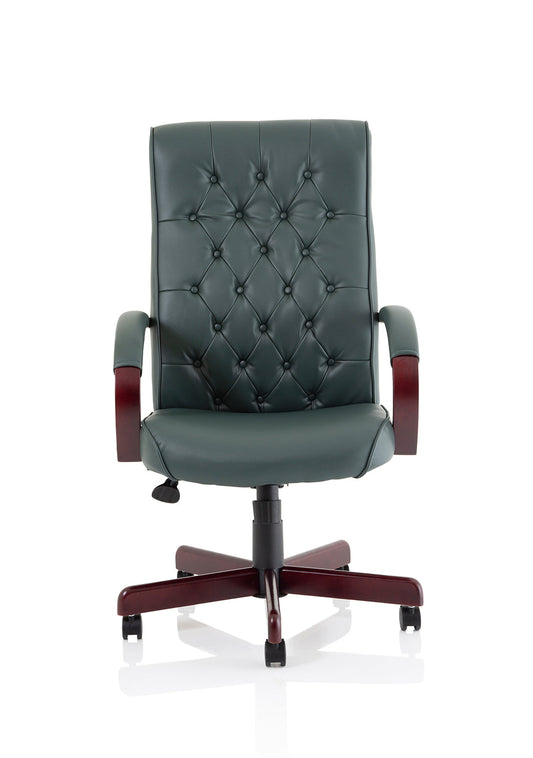 Chesterfield High Back Leather Executive Office Chair with Arms