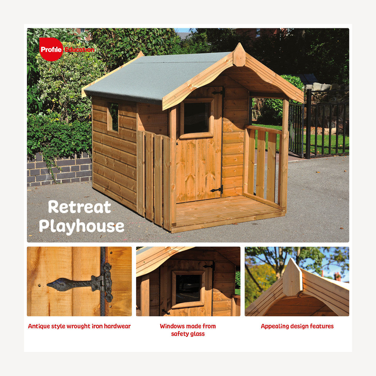 This solid redwood Playhouse is a perfect little retreat for young ones. Superior build quality makes this little Georgian style cottage, with antique door handles and hinges, perfect for school use. Safety features include smooth surfaces inside and out, rounded edges on frames, and acrylic safety glass on the three windows - including door. All playhouses have a solid wood floor but for maximum longevity must be installed on a flat solid base e.g. concrete or paving slab base. You can change the look of the playhouse by using a wide range of colours/wood treatments; available from your local DIY store! You can choose between delivery only for self assembly, or delivery assembled