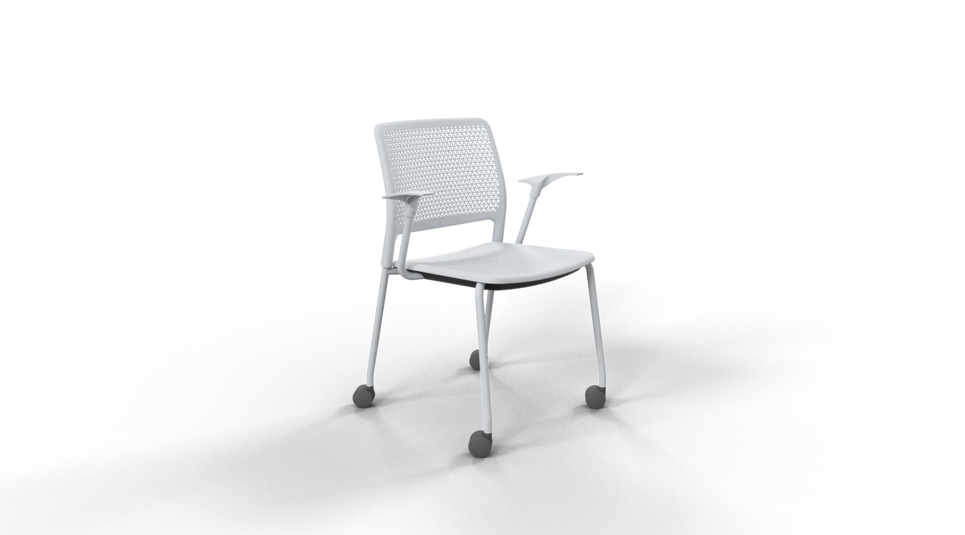 The Grafton Stacking Chair leads the collection, providing a stackable versatile seating solution available in a 4 leg base frame with optional upholstery, castors, and tablet arms. Its distinctive design aesthetic and injection-moulded polypropylene backrest mimics an open-weave fabric yet is exceptionally durable to withstand the toughest environments.