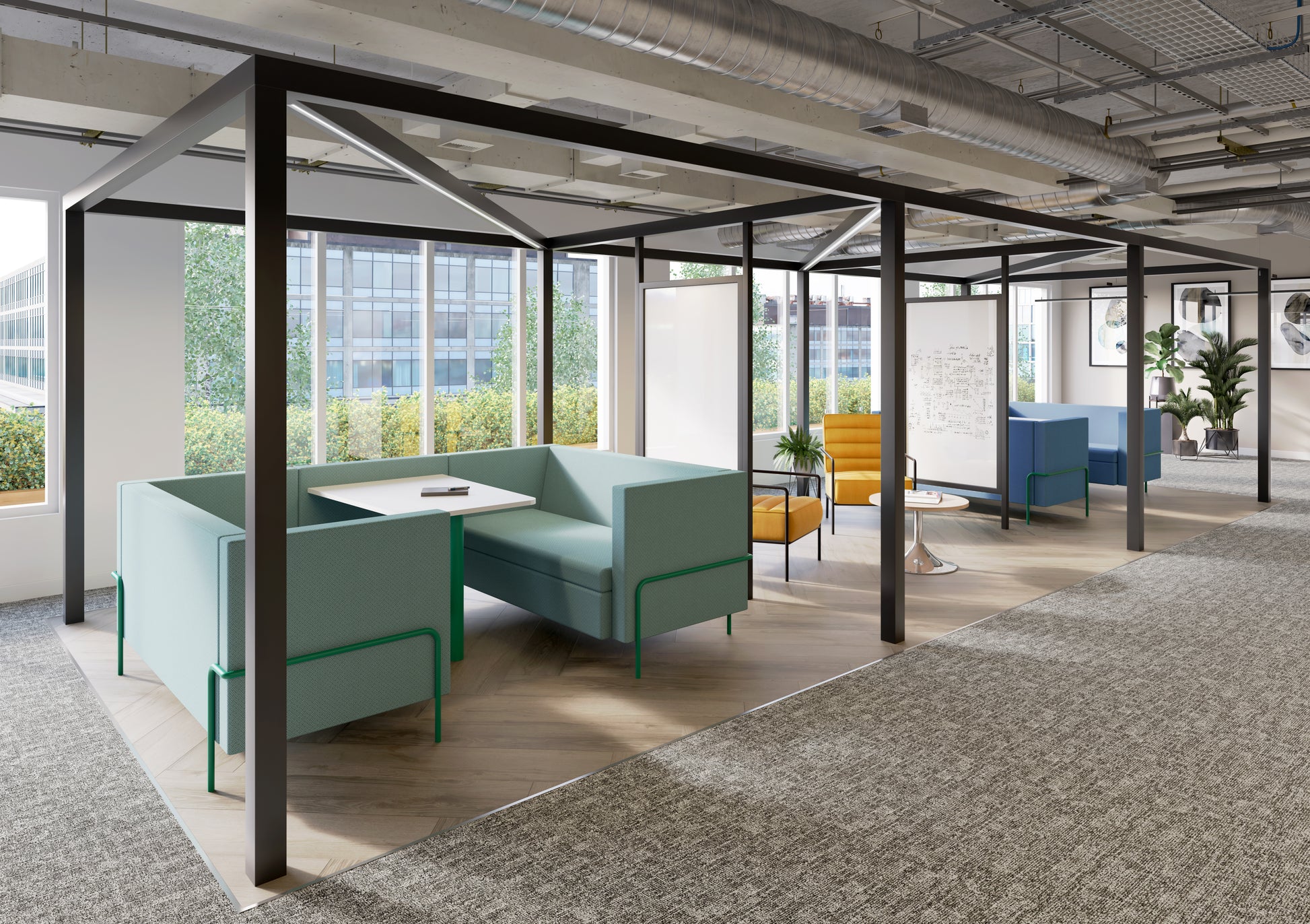 - Our soft seating dens, with space for 2, 4 & 6 people, can turn an open space into a collaborative space that encourages focus and provides privacy for meetings.