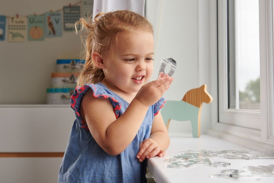 Laser cut double-sided lower case mirror letters, made from highly reflective 3mm acrylic. An aesthetic addition to everyday classroom resources, they can be used as manipulatives for children to feel, play with and trace around, to form simple CVC words, as teacher demonstration pieces and for wall and classroom display purposes. Letters have been selected for their child friendly font style. All pieces come with a 2.5mm hole for hanging to create mobile displays.